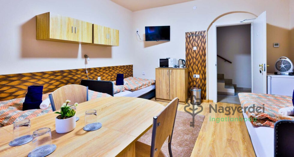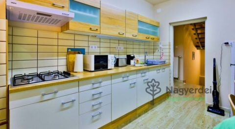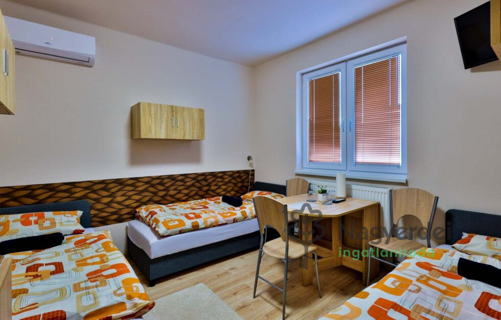 Modern vendégház Debrecen szívében Debrecen belvárosában, a Nagyerdő és a városi fürdő közelében kínáljuk bérbeadásra ezt a 2022-ben teljeskörűen felújított, háromszintes vendégházat. Az ingatlan ideális választás nagyobb csoportok szállásolására, cégek alkalmazottainak, akik értékelik a minőségi kialakítást és a kiváló elhelyezkedést. Főbb jellemzők: - Szobák száma: 6 - Földszint: 1 db 4 ágyas szoba saját fürdőszobával - 1. Emelet: 1 db 3 ágyas és 1 db 4 ágyas szoba, közös, fürdőszobával - 2. Emelet: 3 db 2 ágyas szoba, mindegyik saját fürdőszobával Közös helyiségek: - Teljesen felszerelt konyha - Hangulatos társalgók minden szinten Felszereltség: - WIFI, TV minden szobában - Mikrohullámú sütő, vízforraló, hűtőszekrény - Okos klímaberendezések - Kamerával megfigyelt privát parkoló - Proxi beléptető rendszer Elhelyezkedés: - Bolt 30 méterre - Kiváló tömegközlekedési kapcsolatok Közel a Nagyerdő, a fürdő, a stadion, a Főnix csarnok és az egyetem. Ár: 10.000 Ft/éjszaka/fő (szobánként változó) Referenciaszám: #119393