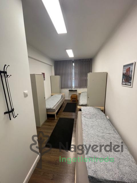 Munkásszállás / Mini hotel kiadó – akár 15 fő részére Debrecenben, ipari telephelyen, teljesen elszeparált mini hotel hosszú távra kiadó, elsősorban cégek és munkavállalók elszállásolására. Főbb jellemzők: • Jelenleg 15 fő elhelyezésére alkalmas, igény szerint bővíthető • Rugalmas szobakialakítás: ◦ 3 db 3 ágyas szoba ◦ 1 db 6 ágyas szoba ◦ További +1 szoba kialakítható • Szellősebb elrendezéssel akár 12 fő / 5 szoba (2 ágyas és 4 ágyas szobák) • Hőszigetelt, redőnnyel ellátott szobák, kézmosóval és zuhanyzóval Közösségi és kiszolgáló terek: • Teakonyha (mikrohullámú sütő, indukciós főzőlap, hűtő) • Tágas közös tér: TV, ping-pong asztal, asztalok, székek • Több WC és piszoár a folyosón Műszaki felszereltség: • Kódzáras beléptetés, kamerarendszer • Hőszivattyús fűtés-hűtés és melegvíz-ellátás, alacsony rezsivel Szolgáltatások: • Teljes üzemeltetés • Heti 2 alkalom takarítás • Heti ágyneműcsere • Parkolás az utcán vagy zárt udvarban (külön díj ellenében) • Cégek számára 30 m²-es hideg raktár bérelhető a telephelyen belül Bérleti feltételek: • Bérleti díj: megállapodás szerint Irányár: 5.000 Ft / fő / éj, rezsivel és takarítással együtt • Kaució: 2 havi bérleti díj • Számla cégnek vagy magánszemélynek is biztosított Ref.szám: 124907