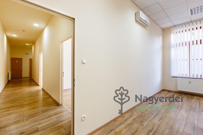 Debrecen belvárosában, egy irodaház földszintjén (97 m2), valamint első emeletén található (99 m2), együttesen 196 m2 alapterületű irodaterület egyben, igény szerint bútorozottan is kiadó. Az emeleti irodák akadálymentesen is megközelíthetők. Az irodaház udvarán külön díj ellenében parkolóhelyek is bérelhetők. Bérleti díj: 750.000.- Ft/ hó+ ÁFA. Referenciaszám: #110724