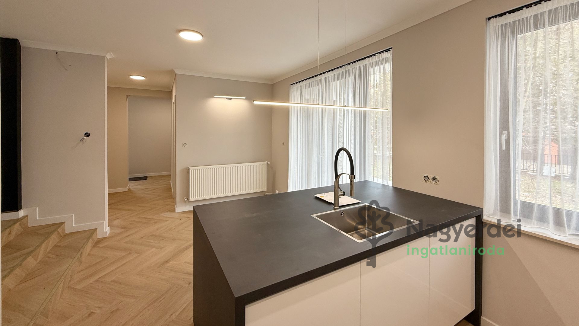 Debrecenben, a Nagyerdő szívében, a BMW-től néhány percre gépjárművel és tömegközlekedéssel könnyen megközelíthető helyen, 160,85 nm-es 4 szobás 2 fürdőszobás ÚJ családi ház kellemes családi övezeti környezetben, saját kerttel, 38 négyzetméteres garázzsal, 50 négyzetméteres tágas terasszal és 3 db 10 négyzetméteres erkéllyel hosszútávra bútorozatlanul kiadó! Tartozik hozzá egy 75,75 nm-es pince, a telek pedig 560 nm. Az épület AA+, energiatakarékos besorolású, modern-minimál stílusú és a legmagasabb műszaki tartalommal rendelkezik. Alsó szinten egy fürdőszoba zuhanykabinnal, külön WC, konyha étkezővel és nappali A felső szinten 4 szoba, 1 fürdőszoba káddal és egy külön WC található. Minden helység külön légkondicionálóval felszerelt. A pince garázs egyben tárolóhelységekkel is rendelkezik, melybe egy külön WC is található. Kisállattartás nem megengedett. Azonnal költözhető, 2 havi kaució ellenében. Referencia szám: #115985