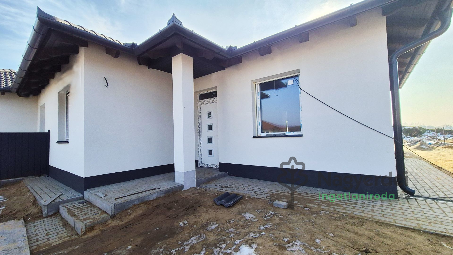 Eladó ikerház Bocskaikert legszebb részén! Ha egy modern, kényelmes és energiahatékony otthont keres csendes, aszfaltozott utcában, akkor megtalálta! Ez az egyedi tervezésű, 105 m²-es, egyszintes ikerház, amely 2024 végén kerül átadásra, minden igényt kielégít. A nappali + 3 szobás kialakítás és a dupla komfortos elrendezés tökéletes választás családok számára, ráadásul az ingatlan egy 350 m²-es saját telken helyezkedik el, garázzsal és tágas terasszal. Főbb jellemzők: Új építésű otthon, amelyet az Ön igényei szerint alakítunk ki – választható burkolatokkal (kerámia és laminált parketta 8000 Ft/m² árig a vételárban). Modern műszaki tartalom: YTONG Lambda 375 NF+GT falazat Bramac betoncserépfedés Austrotherm hőszigetelések (födém- és aljzatszigetelés is) Hő- és hangszigetelt, háromrétegű műanyag nyílászárók. Energiahatékonyság a legmodernebb technológiával: Daikin Altherma hőszivattyú, amely fűtésről és hűtésről is gondoskodik. Padlófűtés, amely nemcsak kellemes hőérzetet biztosít, hanem gazdaságos is. Kényelmes elrendezés: Amerikai konyhás nappali a közös családi pillanatokhoz. Két fürdőszoba a kényelemért. 16 m²-es garázs és 28 m²-es terasz. Környezet: Térkövezett udvar, teljesen körbekerített telek (a kerítés szintén a vételár része). Kiváló elhelyezkedés – közel a központhoz, tömegközlekedéshez, iskolához, óvodához, üzletekhez és orvosi rendelőhöz. Ez az otthon nemcsak a magas műszaki színvonalával, hanem praktikus és esztétikus kialakításával is kiemelkedik. A nyugodt környezet és a kényelmes közelség a mindennapi szükségletekhez teszi igazán különlegessé. Ne hagyja ki ezt a lehetőséget – álmai otthona várja Önt Bocskaikertben! További információért és megtekintésért keressen bizalommal!