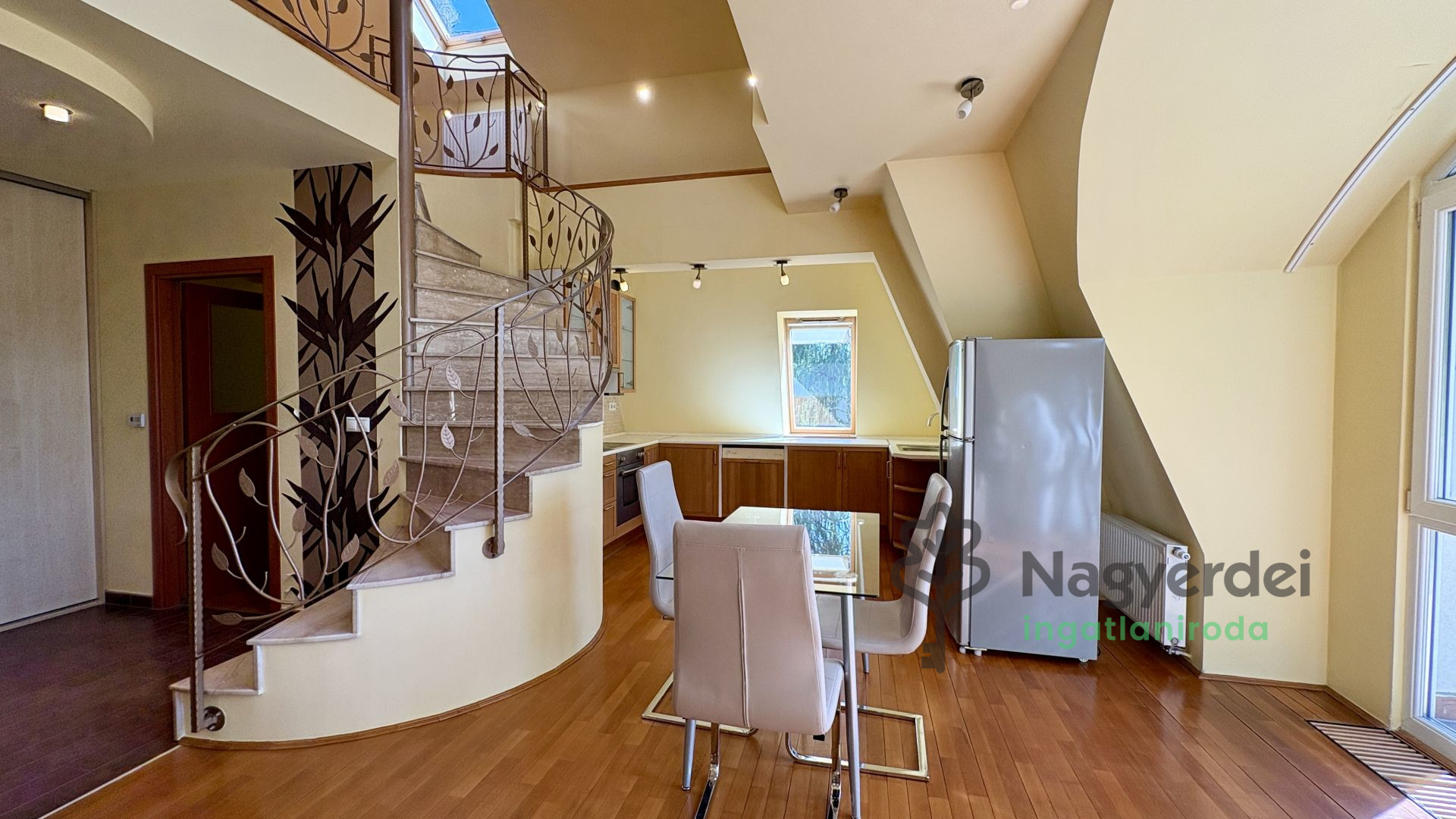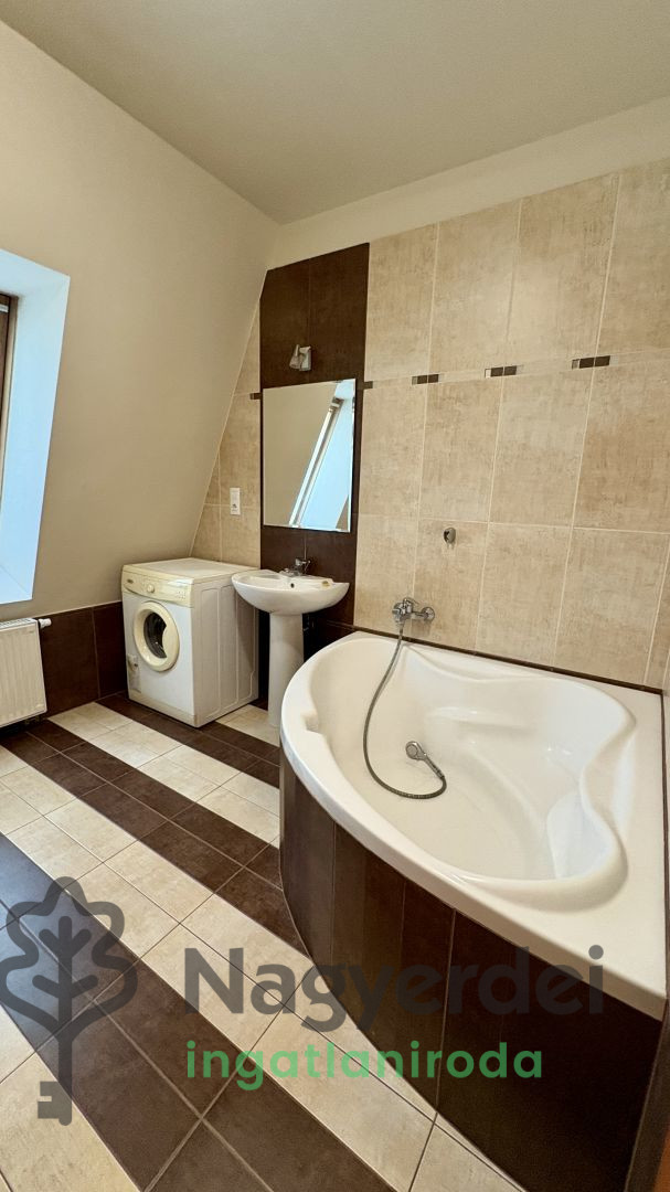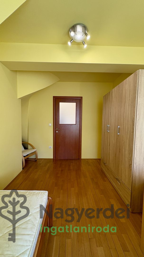 Debrecen-Nagyerdő városrészen, az 1-es villamos és az Egyetem főépületéhez közel kiadó egy 110 m²-es belső két szintes lakás. Az ingatlan melegét gázkazán adja meg. Az alsó szinten 1 szoba + konyha + nappali valamint fürdőszoba és mosdó található, az emeleten pedig szintén egy kis közösségi tér + 1 hálószoba és azon belül egy fürdőszoba. Légkondicionálóval, mosogatógéppel, mosógéppel és hűtővel is felszerelt. Bútorozva átvehető, valamint garázs bérlésére van lehetőség. Azonnal költözhető 2 havi kaució ellenében. Referenciaszám: #120564