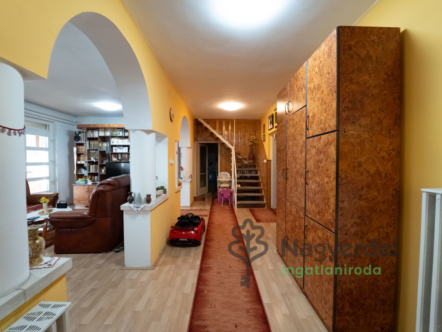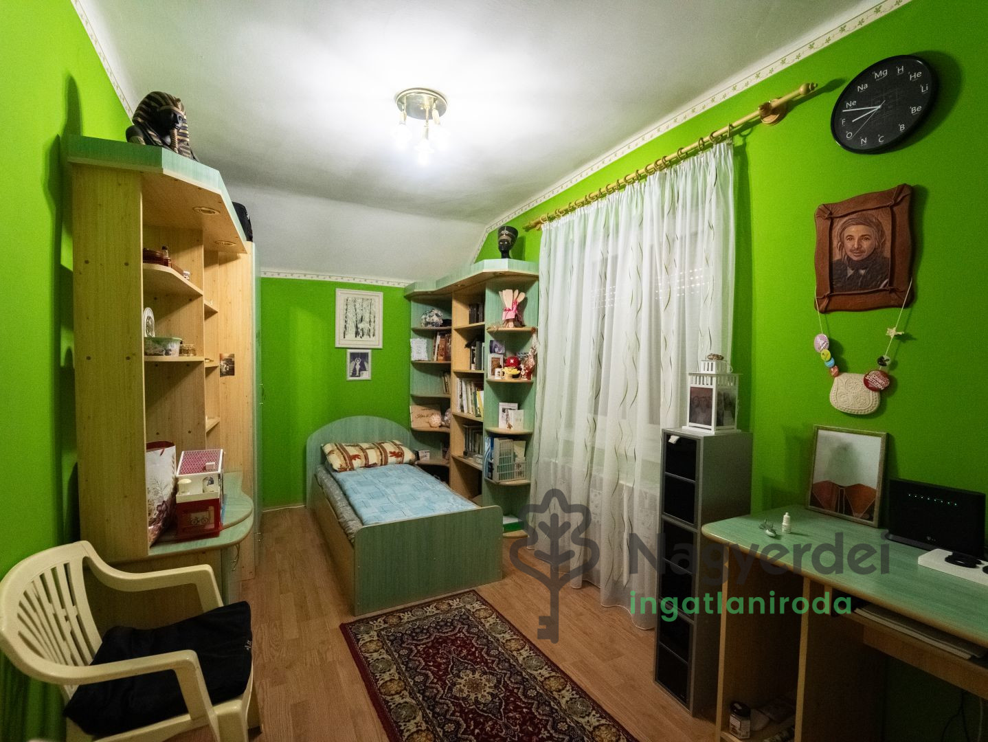 Debrecen Szabadságtelepi városrészén, nappali+4 hálószobás családi ház eladó! Jellemzői: - parkosított saroktelek, ami 838 nm - alápincézett - különálló mobilgarázs - kerti tó - teljesen parkosított kert automata öntözőrendszerrel - mindkét oldalon elektromos kapuval ellátott bejárat Helyiségek elosztása: Pince: Fűtött pincehelyiség (gázkazánnal) Külön bejáratú, 20 m² garázs Földszint: Folyosó, Nappali, 2 hálószoba, Spájz, Konyha, Fürdőszoba, Fedett terasz (19 m²) Emelet: 2 hálószoba, Fürdőszoba, Fedett erkély (12 m²) Műszaki jellemzők: Fűtés és meleg víz: gázcirkó kazán Hűtés: Gree klíma 3 fázisú áramellátás (3x16A) Zárt aknás esővíz-elvezetés 2014-es felújítás: 8 cm-es külső szigetelés, Műanyag, hőszigetelt nyílászárók, Új tetőszerkezet, kerámia héjazattal Az ingatlan per- és tehermentes, azonnal költözhető, bútorozott állapotban eladó! Világos, tágas terek, csendes kertvárosi környezet, gondozott udvar és kétoldali elektromos kapu biztosítják a kényelmes és biztonságos mindennapokat.