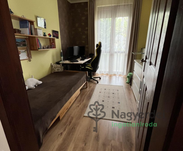 Debrecen egyik kedvelt, nyugodt városrészében kínálunk megvételre egy 107 m²-es, földszintes, önálló családi házat, amely egy 670 m²-es, parkosított telken helyezkedik el. Az ingatlan praktikus elosztású: amerikai konyhás étkező, tágas nappali kandallóval és kertkapcsolattal, 2 külön nyíló hálószoba, előszoba, kamra, fürdőszoba (sarokkáddal és zuhanyzóval), valamint külön WC található benne. A ház Porotherm téglából épült, kerámia cseréptetővel, jó műszaki állapotban. A fűtést Vaillant gázkazán biztosítja radiátorokon keresztül. A nyílászárók műanyagok, redőnnyel, szúnyoghálóval felszereltek. Az ingatlanhoz tartozik egy különálló épületben található 30 m²-es garázs, valamint egy 10 m²-es tároló. A telken több autó számára is van beállási lehetőség. A kert gondozott, parkosított, fúrt kúttal. További extrák: riasztó, kandalló, kihúzható napellenző, tetőtér beépítési lehetőség (~40 m²). A közelben minden megtalálható: Lidl, gyógyszertár, orvosi rendelő, buszmegálló, park, óvoda. Ideális választás családok számára, akik csendes környezetben, mégis a belvároshoz közel szeretnének élni. További információért és megtekintésért keressen bizalommal! Ref.szám:125876