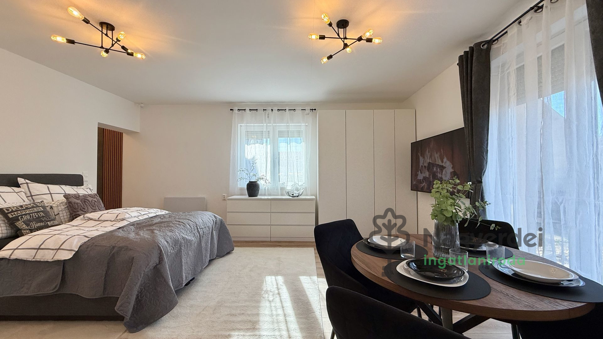 Debrecen-Kerekestelep városrészen, a Déli Ipari Parkhoz autóval pár percre kiadó egy ÚJ ÉPÍTÉSŰ, EXKLÚZÍV studió lakás. Az ingatlan bútorozott és gépesített, napelemmel, légkondival ellátott. Parkolás zárt udvarban lehetséges, továbbá elektromos autó töltési lehetőség is kialakításra került. Kisállat hozható. A rezsiköltsége nagyon kedvező, mivel 'zöld' ingatlanról beszélünk. Május 1-el költözhető, 2 havi kaució ellenében lehetséges. Referenciaszám: #126221