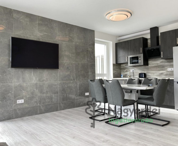 Kiadó Debrecen-Tócóskert városrészen egy új építésű 63 m²-es tégla ingatlan, üzletekhez és buszmegállókhoz közel. A lakás 2 hálószoba + nappali elrendezésű, egy főhálószobával és egy kisebb hálószobával. Beépített szekrények találhatók a folyosón, ahol mosó- és szárítógép került beszerelésre. Az ingatlan igényesen bútorozott. Felszereltségét illetően, található benne mosogatógép, légkondicionáló, a konyha teljesen gépesített. Műanyag nyílászárókkal és elektromos redőnyökkel felszerelt. Tartozik hozzá egy 7 m²-es erkély is, a parkolás pedig az utcán ingyenesen megoldható. Azonnal költözhető, 2 havi kaució ellenében. Referenciaszám: #126343