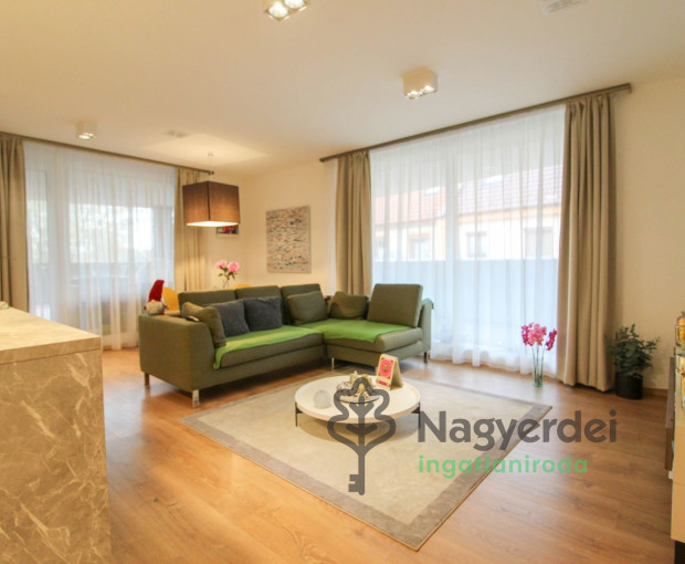 60 m²-es, teljesen felszerelt luxuslakás új építésű társasházban, hosszú távra. Jellemzők: – Nappali + 2 háló, fürdő + WC – 65 m² berendezett tera...