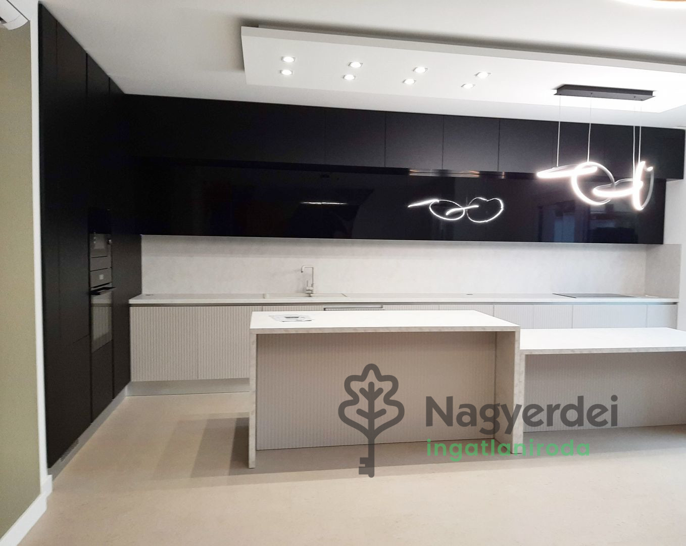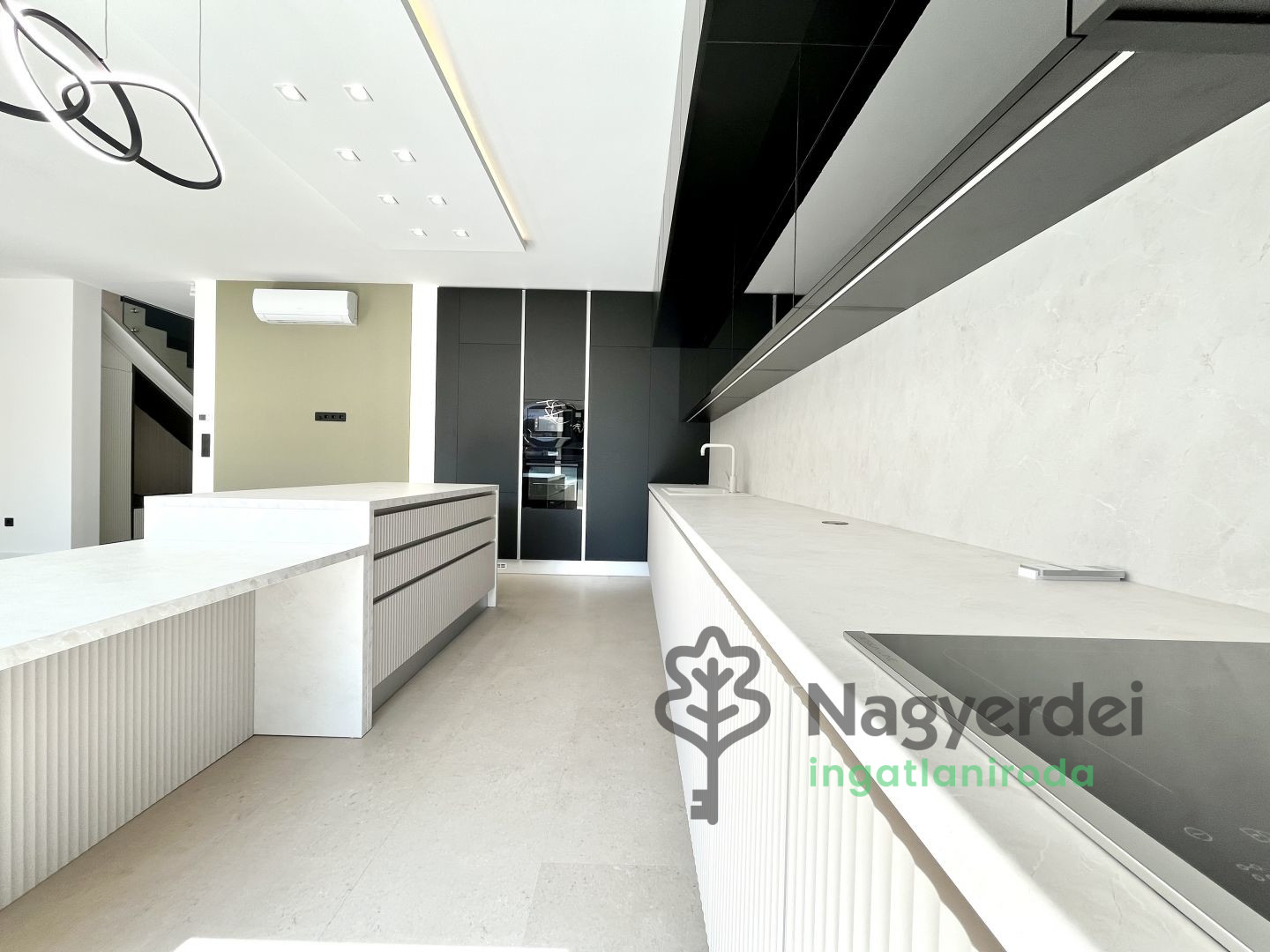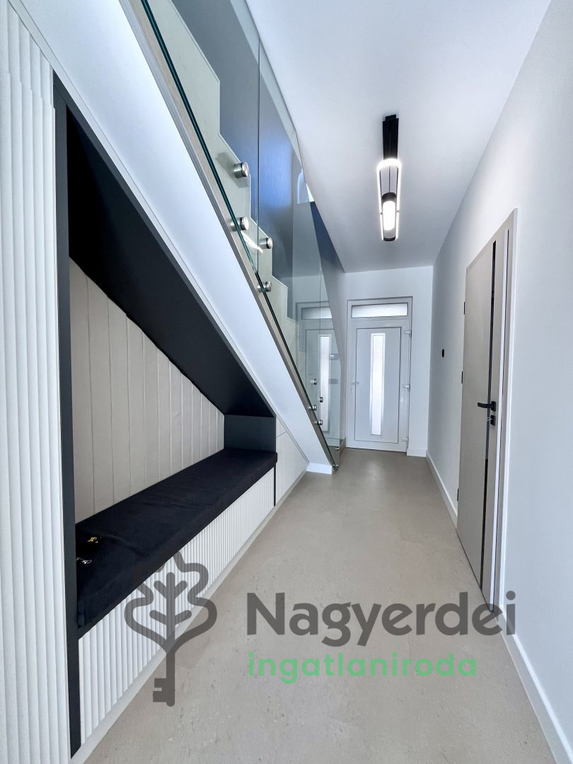 Debrecen belváros csendes utcájában 120 nm-es, belső kétszintes ikerház, dupla garázzsal, prémium műszaki tartalommal eladó! Földszinten előtér, amerikai konyhás nappali, terasz, zuhanyzó, garázs található, míg a felső szinten három hálószoba, gardrób, 2 fürdőszoba, mosókonyha került kialakításra. Jellemzői: - belsőépítész által megtervezett design - prémium konyhabútor AEG gépekkel - háztartási vízlágyítórendszer - egyedi előszoba bútor - hőszivattyús padlófűtés - klimatizált szobák - vinil padló - parkosított kert - zárt kerítés - esőérzékelős öntözőrendszer - robotfűnyíró - riasztó-,és kamerarendszer - video kaputelefon - 3 rétegű műanyag nyílászárók - elektromos alumínium redőny - Hörmann elektromos garázskapu - elektromos autótöltő - saját kertrész kb. 100 nm AZONNAL KÖLTÖZHETŐ! Referenciaszám: #117370 *** In a quiet street in the city center of Debrecen, a 120 sqm, internal two-story semi-detached house with a double garage and premium technical content is for sale! On the ground floor there is a hallway, living room with American kitchen, terrace, shower, garage, while on the upper floor there are three bedrooms, wardrobe, 2 bathrooms, and a laundry room. Features: - design designed by an interior designer - premium kitchen furniture with AEG appliances - household water softening system - unique hallway furniture - heat pump underfloor heating - air-conditioned rooms - vinyl flooring - landscaped garden - closed fence - rain sensor irrigation system - robot lawn mower - alarm and camera system - video intercom - 3-layer plastic windows and doors - electric aluminum shutters - Hörmann electric garage door - electric car charger - private garden area approx. 100 sqm AVAILABLE TO MOVE IN IMMEDIATELY! Reference number: #117370