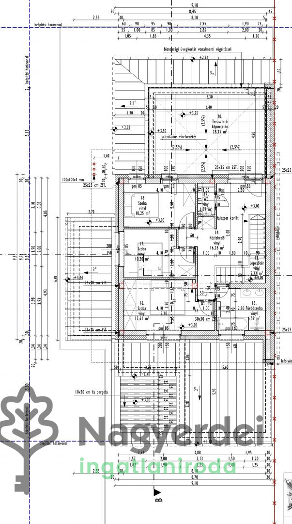 Új építésű, önálló, prémium minőségű családi ház Debrecen Pallag városrészében eladó! Eladásra kínálunk egy magas műszaki tartalommal épülő családi házat, Debrecen-Pallag közkedvelt lakóparkjában, 2025 harmadik negyedévi befejezéssel. . Paraméterei: - 870 m2 telek - 205 m2 nettó alapterület - 28 m2 tetőterasz és 40 m2 földszinti terasz - 4 hálószoba + nappali - Az egyik hálószoba master bedroom, külön gardrobbal és fürdőszobával - 2 fürdőszoba, mindkettő fürdőkáddal, zuhanyzóval és wc-vel felszerelt - Szintenként 1-1 vendég wc - Külön helyiségben mosókonyha - 30 cm tégla falazat, 15 cm grafitos szigeteléssel - 25 cm monolit födém, 18 cm tűzálló pírhab szigeteléssel - 3 rétegű, hőszigetelt, kívül-belül színes prémium nyílászárok - Minden nyílászárón színazonos, aluminium elektromos redőnyök - Prémium, acél-aluminium bejárati ajtó - Hőszivattyús, helyiségenként vezérelhető padlófűtés, mennyezet hűtés került kialakításra - Riasztó és kamerarendszer teljes kiépítése - Szekcionált Hörmann garázskapu távirányítóval - Az ár tartalmazza a határoló kerítéseket, a térkövezést és parkosítást is! Részletes műszaki leírással, a kulcsra kész befejezésre vonatkozóan illetve bővebb tájékoztatásért hívjon bizalommal.