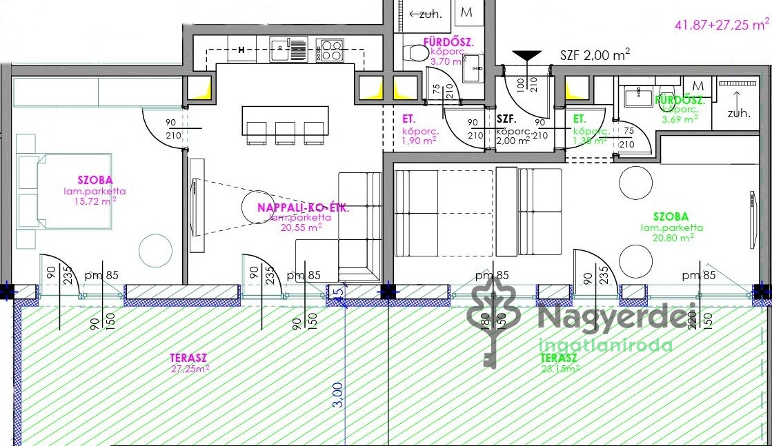 ELADÓ ÚJ ÉPÍTÉSŰ LAKÁS DEBRECENBEN – CSENDES, FREKVENTÁLT BELVÁROSI RÉSZÉN Ne maradjon le az egyik MODERN lakásról Debrecen SZÍVÉBEN! Megvételre kínáljuk ezt a 41,87 nm-es, ÚJ ÉPÍTÉSŰ ingatlant, amely IDEÁLIS választás önálló fiataloknak, pároknak, idősebbeknek vagy akár BEFEKTETÉSI célra is. A lakás kialakítása: amerikai konyhás nappali, KÜLÖN hálószoba, fürdőszoba, valamint egy TÁGAS, 27,25 nm-es, dél-keleti fekvésű TERASZ, amely TÖKÉLETES helyszín a pihenéshez vagy akár társasági alkalmakhoz egyaránt. A fűtés TÁVHŐVEL, egyedi mérőkkel lett megoldva – így a költségek pontosan NYOMON KÖVETHETŐK, személyre szabhatók. Az egész éves OPTIMÁLIS hőmérsékletről KORSZERŰ HŰTŐ-FŰTŐ LEVEGŐS HŐSZIVATTYÚS berendezés gondoskodik, mely ENERGIATAKARÉKOS és KÖRNYEZETBARÁT megoldás. Az épület PINCESZINTJÉN PARKOLÓHELYEK állnak rendelkezésre, biztosítva gépjárműve teljes védelmét, amely különösen értékes SZEMPONT a belvárosi környezetben. Ez az ingatlan KIVÁLÓ lehetőség mindazok számára, akik MODERN, GAZDASÁGOS és IGÉNYES lakókörnyezetre vágynak a város egyik legvonzóbb részén. Referenciaszám: # 119963