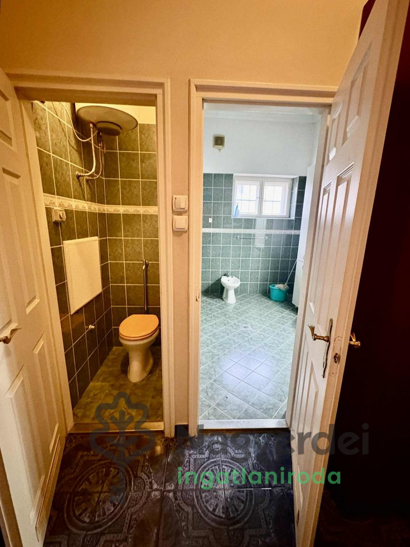 Hajdúhadház Belvárosi részén eladó nagy belmagasságú, felújítandó, 4 szobás terméskő alapon vályogtéglából épült kétlakásos lakóépület 100nm-es nagyobbik fele. Jellemzői: -27nm-es pince -51cm vastag vályogtégla falazat -740nm-es telek -külön helyrajzi számon van -fűtése infrapanel beépítve a plafonba, minden helyiségben külön termosztáttal állítható hőmérséklet -3,4m-es belmagasság -bádogtető -wc és fürdőszoba külön helyiségben 2 állásos beton alapon fából épült garázs található az udvarban, valamint 2-3 autó beállására van lehetőség. Vállalkozásnak, orvosi rendelőnek is alkalmas az ingatlan egyik része, ami a 4-ből 2 szobát érint, és külön bejárattal is megközelíthető,valamint külön wc-vel rendelkezik. Az ingatlanba a gáz nincs bevezetve. Kis átépítéssel akár a hatalmas padlástér is beépíthető lehet.