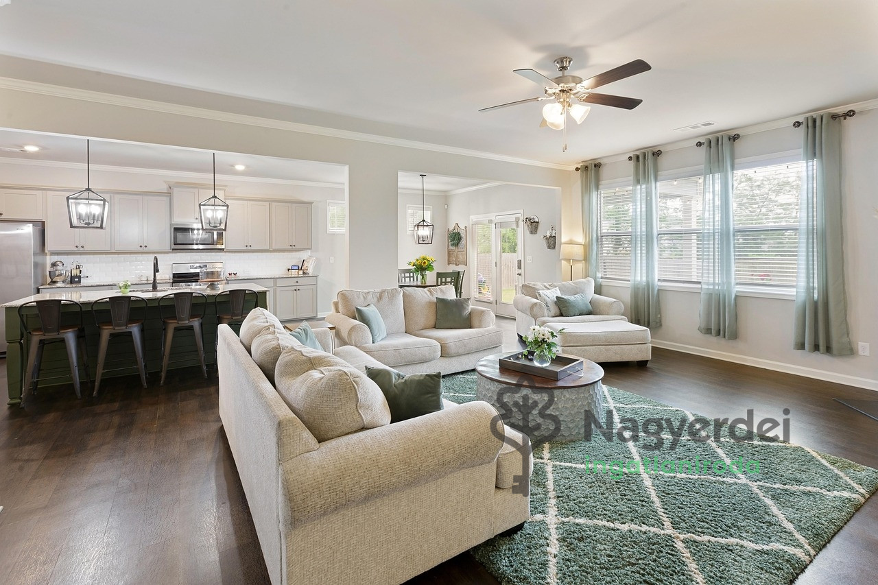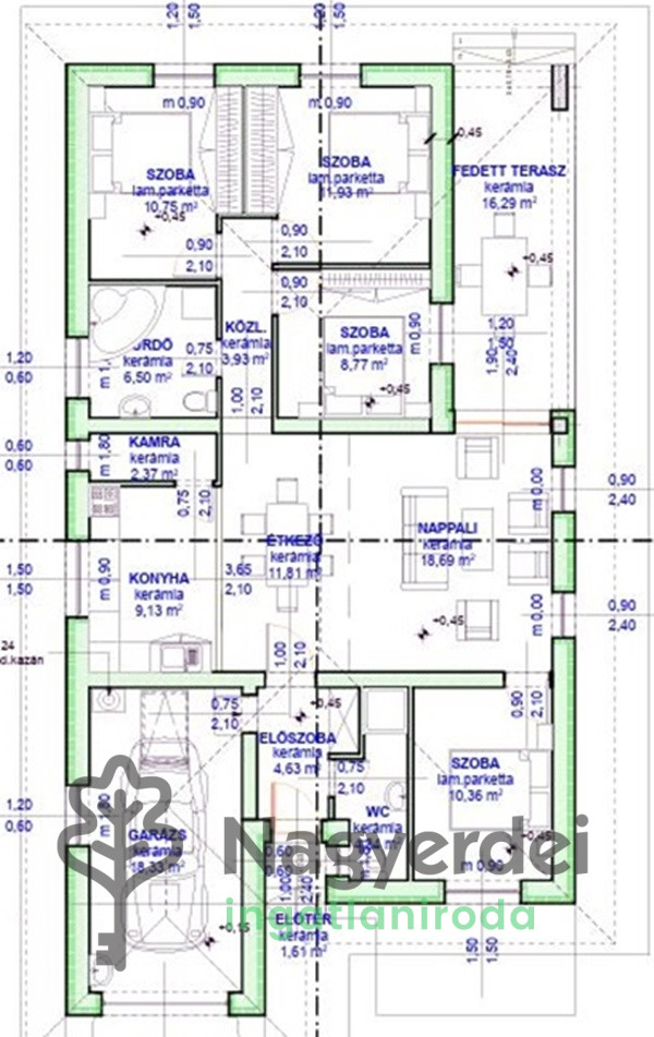 Júliakert csendes részén új építésű, modern családi ház eladó. Földszintes kialakítású, kiváló elosztással és korszerű műszaki tartalommal, 607 nm-es telken amerikai konyhás nappali, kamra, négy hálószoba, külön fürdő és WC, fedett terasz, garázs kerül kialakításra 139,44 nm-en. Jellemzők: - 15 cm-es homlokzati szigetelés - 5 légkamrás műanyag nyílászárók 3 rétegű üvegezéssel - hőszivattyús padlófűtés - burkolatok bruttó 10 000.-Ft/nm áron választhatóak - motoros szekcionált garázskapu - kaputelefon, riasztó előkészítés - az ár tartalmazza a kerítést és térkövezést is - év végi átadás Amennyiben felkeltette az érdeklődését az eladó családi ház, keressen a megadott elérhetőségeken. Referenciaszám. # 124549 *** A newly built, modern family house is for sale in a quiet part of Júliakert. Ground-level design, with excellent distribution and modern technical content, on a 607 sqm plot, a living room with an American kitchen, pantry, four bedrooms, a separate bathroom and toilet, a covered terrace, and a garage will be built on 139.44 sqm. Features: - 15 cm facade insulation - 5 air chamber plastic windows and doors with 3 layers of glazing - heat pump underfloor heating - coverings can be selected at a gross price of 10,000.-Ft/sqm - motorized sectional garage door - intercom, alarm preparation - the price includes the fence and paving - end-of-year handover If you are interested in the family house for sale, please contact us at the given contact details. Reference number. # 124549