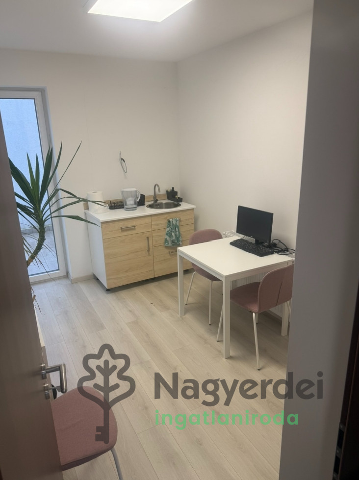 Debrecen frekventált részén, a Liget lakóparkban, modern társasház 2. emeletén, 37 m² alapterületű, KIVÁLÓ ÁLLAPOTÚ, bútorozatlan iroda kiadó . Jellemzői: - Két helyiségből (iroda és tárgyaló), valamint vizes helyiségből áll. - 8 m²-es terasszal és egy 2 m²-es loggiaval rendelkezik. - Déli fekvésű, így egész nap rengeteg természetes fényt kap. - Távirányítású zsaluziák kerültek kiépítésre. - A fűtést kondenzációs gázkazán biztosítja, a helyiségben hűtő-fűtő klímaberendezés található. Az ingatlan üzemeltetési költsége rendkívül alacsony: - Rezsi: 10.000 Ft/hó - Közös költség: 6.000 Ft/hó Az iroda kiváló megközelíthetőségű, a ház előtt ingyenes parkolási lehetőség biztosított. Ref.: 124602