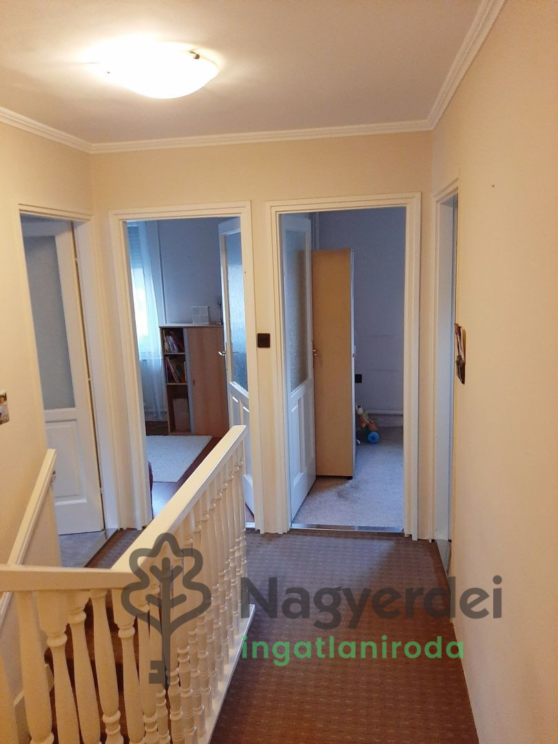 Debrecen Alsó-Józsán kiadó egy 1992-ben épült, jó állapotú, folyamatosan karbantartott családi ház. Az ingatlan 1000 nm-es telken található, belső kétszintes, 180 nm-es. Földszintjén kapott helyet a nappali, konyha, kamra, fürdőszoba, hálószoba, fedett terasz, valamint egy jelenleg irodaként funkcionáló helyiség. Felső szintjén 4 szoba, gardrób, 2 fürdőszoba található. Térkövezett udvarán egy 80 nm-es, könnyűszerkezetes, fűthető műhely épült. A kert hátsó része elkerített, kertészkedésre alkalmas. Ipari áram, és fúrt kút van. A nyílászárói néhány éve műanyagra lettek cserélve, és a nappali kivételével redőnnyel felszereltek. A ház fűtése gáz-cirkó rendszerű. Földszintjén a villanyvezetékek cseréje megtörtént. A fedett gépkocsibeálló mellett az udvaron és a ház előtt is több gépkocsi parkolására van lehetőség. Referenciaszám: #125358 *** A family house built in 1992, in good condition and constantly maintained, is for rent in Debrecen Alsó-Józsán. The property is located on a 1000 sqm plot, with an internal two-story area of 180 sqm. On the ground floor there is a living room, kitchen, pantry, bathroom, bedroom, covered terrace, and a room currently functioning as an office. On the upper floor there are 4 rooms, a wardrobe, and 2 bathrooms. An 80 sqm, lightweight, heated workshop has been built in its paved courtyard. The back of the garden is fenced and suitable for gardening. There is industrial electricity and a drilled well. The windows and doors were replaced with plastic a few years ago, and except for the living room, they are equipped with shutters. The house is heated with a gas-circulation system. The electrical wiring on the ground floor has been replaced. In addition to the covered parking space, there is also parking for several cars in the yard and in front of the house. Reference number: #125358