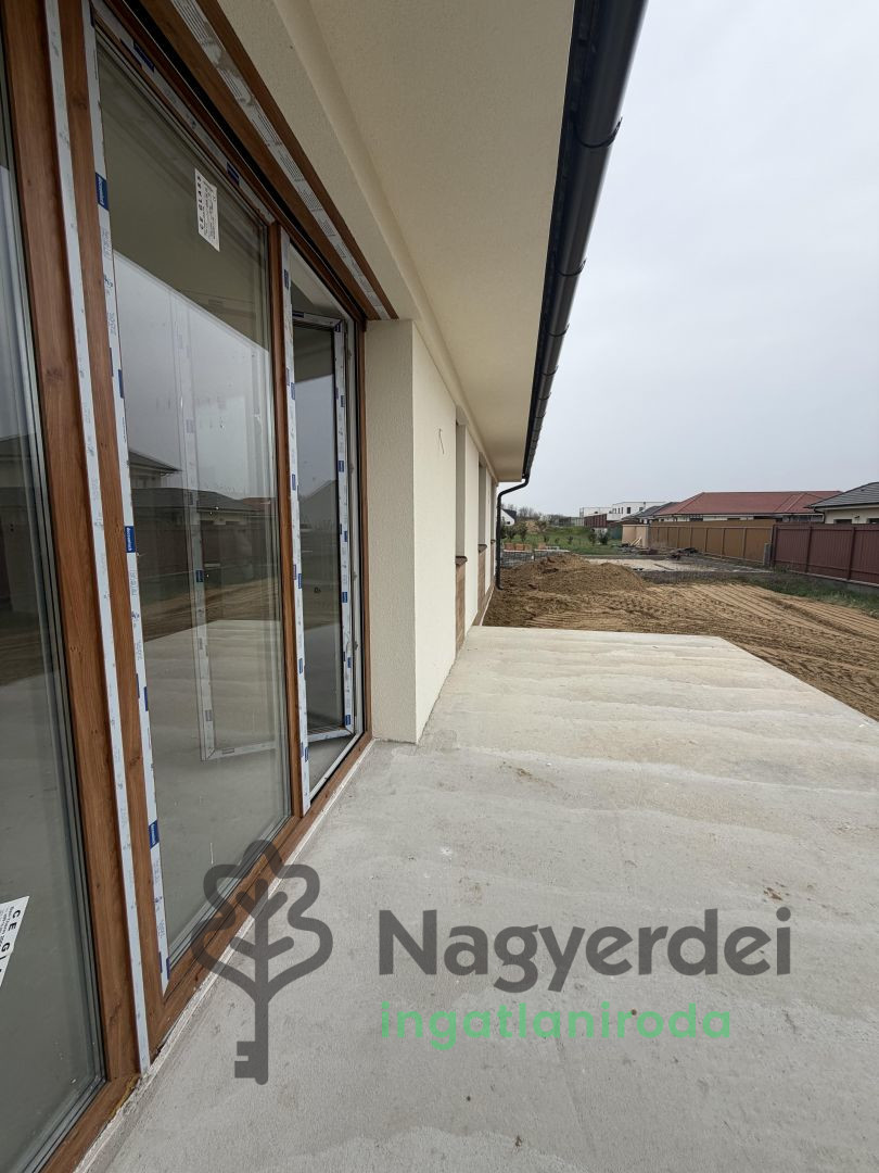 PRÉMIUM ÚJ ÉPÍTÉSŰ IKERHÁZ PALLAGON – MODERN MEGJELENÉS, EMELT MŰSZAKI TARTALOM Új építésű, modern családi házak környezetében kínálunk megvételre egy letisztult megjelenésű, földszintes ikerházat. Főbb adatok : •Hasznos lakóterület: 118,72 m² + 19,65 m² terasz •Földszintes lakóház, átgondolt családi elrendezés •Amerikai konyhás nappali–étkező, közvetlen kertkapcsolattal •3 külön nyíló hálószoba •fürdőszoba, WC •Praktikus tárolóhelyiség •Saját, privát 466 m² telekrész •Önálló garázs, közvetlen kapcsolattal a lakótérhez Műszaki tartalom – korszerű és energiatakarékos: •egyedi mérőhellyel ellátott hőszivattyú biztosítja MIDEA 8 kW rendszer biztosítja a fűtést, hűtést és a melegvíz-ellátást •Teljes felületen padlófűtés • A külső és belső teherhordó falak POROtherm 30 N+F téglából készülnek •30 cm-es falazat + 15 cm homlokzati polisztirol hőszigetelés •3 rétegű, 6 levegőkamrás hő- és hangszigetelt nyílászárók •Redőny előkészítés •Riasztórendszer kiállás •Elektromos autó töltési lehetőség előkészítve a garázsban •32A teljesítmény •Térkövezett beálló és járdák •Minőségi, szabvány szerinti kivitelezés Elhelyezkedés: Az ingatlan egy teljesen új kialakítású, barátságos lakókörnyezetben található, ahol a környező házak mind új építésű, igényes családi otthonok. A környéken nincs romos vagy elhanyagolt ingatlan, az utcakép rendezett, esztétikus és egységesen modern. Az utca nemrég került kialakításra és felújításra, így infrastruktúrája is új, rendezett és kulturált – ez hosszú távon is értékálló környezetet biztosít. A ház külső megjelenése letisztult, korszerű építészeti stílust képvisel. A nagy üvegfelületek, a tágas teraszok és az arányos homlokzati kialakítás modern, prémium hatást keltenek. A belső terek kialakításánál a világosság és az élhetőség volt a fő szempont – a nappali és a szobák világosak, jól benapozottak, ami kellemes, otthonos hangulatot biztosít a mindennapokban. Nyugodt, rendezett, folyamatosan fejlődő kertvárosi környezet, új építésű ingatlanok szomszédságában. Iskola, óvoda, üzletek, gyógyszertár és tömegközlekedés néhány percen belül elérhető, a főbb közlekedési útvonalak gyors kapcsolatot biztosítanak a debreceni belváros felé. Ár: 132,9 millió Ft – kulcsrakész állapotban Finanszírozási lehetőségek Az ingatlan megfelel a jelenleg elérhető, népszerű otthonteremtési és támogatott hitelkonstrukciók feltételeinek, így igényelhető rá többek között: •CSOK Plusz •3%-os, támogatott lakáshitel konstrukciók •Banki lakáshitel és kombinált finanszírozási megoldások Igény esetén díjmentes hitel-előminősítésben és teljes körű ügyintézésben is segítséget biztosítunk, hogy a vásárlás folyamata gyors és zökkenőmentes legyen. Hívjon bizalommal! Referencia szám:#126000