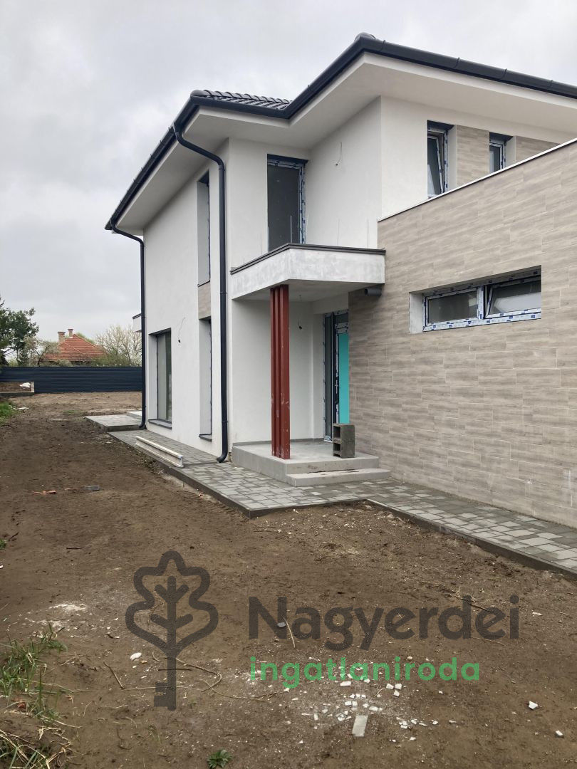 PRÉMIUM ÚJ ÉPÍTÉSŰ IKERHÁZ A KEREKESTELEPEN – MODERN MEGJELENÉS, EMELT MŰSZAKI TARTALOM Új építésű, modern családi házak környezetében kínálunk megvételre egy letisztult megjelenésű, kétszintes ikerházat. Főbb adatok: •Hasznos lakóterület: 170 m² + 22,66 m² terasz és 3,6 m² + 6,08 m² erkélyek •Kétszintes, átgondolt családi elrendezés •Amerikai konyhás nappali–étkező, közvetlen kertkapcsolattal •4 külön nyíló hálószoba •2 fürdőszoba •Gardrób és praktikus tárolóhelyiségek •Alsó szinten kb. 22,66 m²-es terasz •Emeleten 1 db 5,44 m²-es erkély, 1 db 6,08 m²-es erkély és 2 db nem járható lapostető •Saját, kb. 451 m²-es privát telekrész lakásonként •Önálló 33,93 m²-es dupla garázs, közvetlen kapcsolattal a lakótérhez Műszaki tartalom – korszerű és energiatakarékos: •Egyedi mérőhellyel ellátott kondenzációs, turbós kombikazán VIESMANN 24 kW rendszer vagy ezzel egyenértékű ill.VIESMANN 10 kW levegős hőszivattyú biztosítja, gyári vezérléssel, külső hőmérséklet érzékelővel biztosítja a fűtést és a melegvíz-ellátást •Teljes felületen padlófűtés és mennyezeti hűtés •A külső és belső teherhordó falak POROtherm 30 N+F téglából készülnek •Helyiségekben klíma-előkészítés •30 cm-es falazat + 10 cm homlokzati polisztirol hőszigetelés •3 rétegű, 6 levegőkamrás hő- és hangszigetelt nyílászárók •Redőny előkészítés •Riasztórendszer kiállás •Elektromos autó töltési lehetőség előkészítve a garázsban •32A teljesítmény •Térkövezett beálló és járdák •Minőségi, szabvány szerinti kivitelezés Elhelyezkedés: Az ingatlan egy teljesen új kialakítású, frissen beépült lakókörnyezetben található, ahol a környező házak szinte mind új építésű, igényes családi otthonok. A környéken nincs romos vagy elhanyagolt ingatlan, az utcakép rendezett, esztétikus és egységesen modern. Az utca nemrég került kialakításra és felújításra, így infrastruktúrája is új, rendezett és kulturált – ez hosszú távon is értékálló környezetet biztosít. A ház külső megjelenése letisztult, korszerű építészeti stílust képvisel. A nagy üvegfelületek, a tágas teraszok és az arányos homlokzati kialakítás modern, prémium hatást keltenek. A belső terek kialakításánál a világosság és az élhetőség volt a fő szempont – a nappali és a szobák világosak, jól benapozottak, ami kellemes, otthonos hangulatot biztosít a mindennapokban. Nyugodt, rendezett, folyamatosan fejlődő kertvárosi környezet, új építésű ingatlanok szomszédságában. Iskola, óvoda, üzletek, gyógyszertár és tömegközlekedés néhány percen belül elérhető, a főbb közlekedési útvonalak gyors kapcsolatot biztosítanak a belváros felé. Ár: 165 millió Ft /– kulcsrakész állapotban Finanszírozási lehetőségek Igény esetén díjmentes hitel-előminősítésben és teljes körű ügyintézésben is segítséget biztosítunk, hogy a vásárlás folyamata gyors és zökkenőmentes legyen. Hívjon bizalommal! Referencia szám:#126002